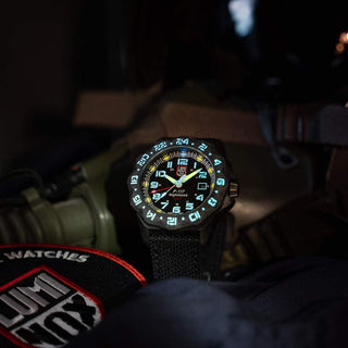 Erleben Sie die Definition von exzellenter Zeitmessung mit der bemerkenswerten Serie 6440 von Luminox. Angetrieben von einem mehrsteinigen Schweizer Quarz GMT Uhrwerk, verkörpert diese Kollektion die Verschmelzung von amerikanischer Innovation und Schweizer Handwerkskunst. Navigieren Sie nahtlos durch zwei Zeitzonen mit unübertroffener Genauigkeit und Effizienz und bleiben Sie synchron mit dem Puls der Zeit, egal wohin Ihre Abenteuer führen.