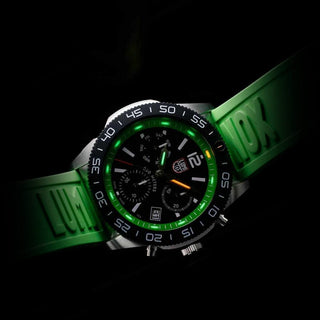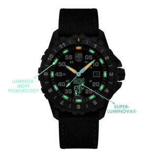 Jede Luminox Uhr enthält winzige, selbstversorgende Mikrogas-Leuchtröhren (Borosilikatglas-Kapseln), die immer leuchten. Die Kapseln befinden sich auf den Zeigern, den Stundenmarkierungen und, wenn nötig, auf den Lünetten. Diese Leuchtröhren sind sowohl für den Menschen als auch für die Umwelt sicher und werden einzeln von Hand in jede Uhr eingebaut.