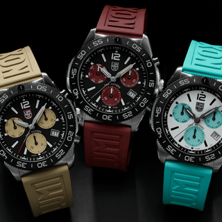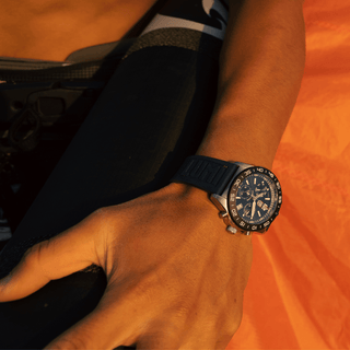 Die Pacific Diver Chronograph Serie 3140 ist in 9 Variationen erhältlich: 7 Uhren sind mit einem XS-XL Uhrenarmband ausgestattet für eine einfache und perfekte Passform, 2 mit einem Edelstahlarmband.