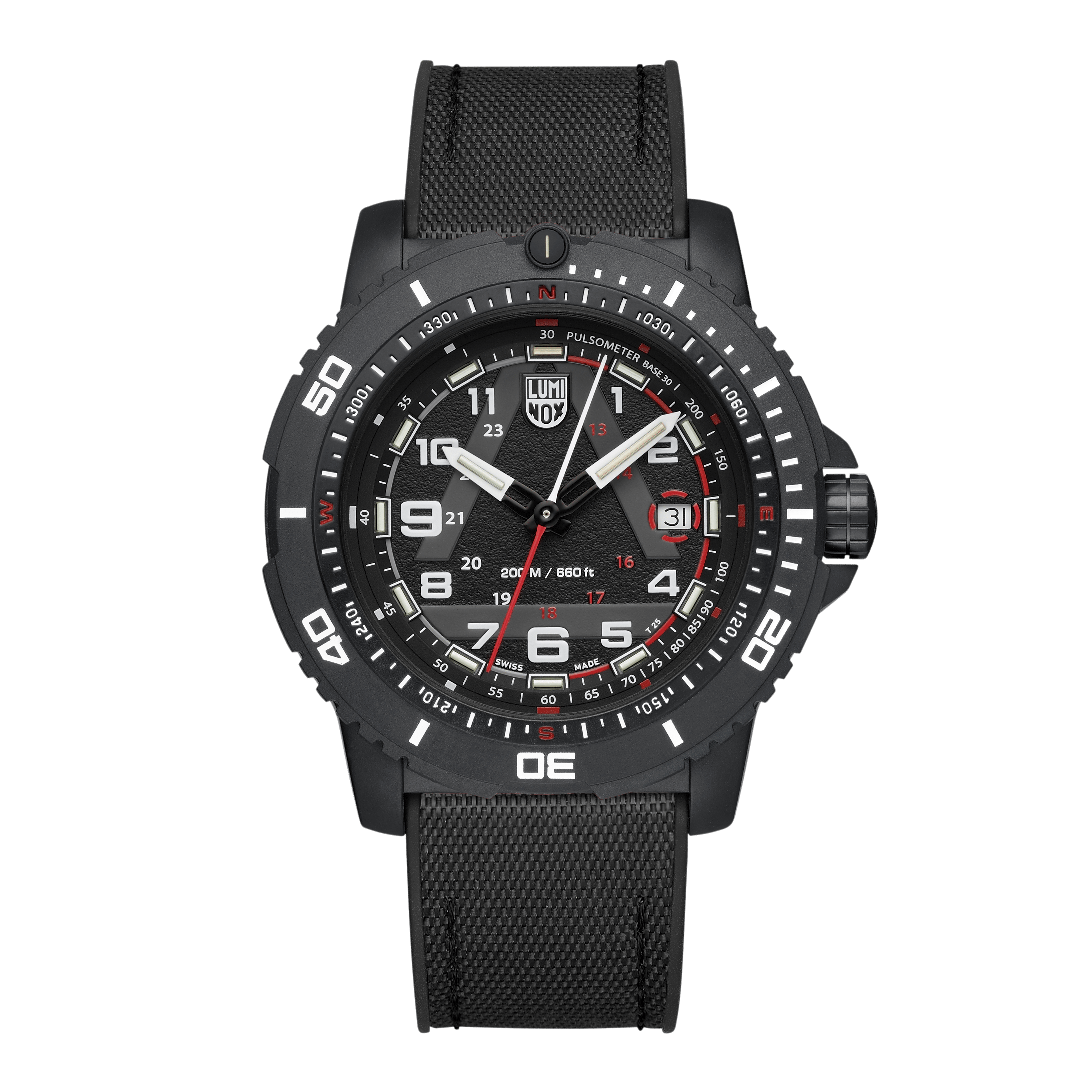 Inspiriert von den schwierigsten Rettungseinsätzen Islands wurde die Luminox ICE-SAR 1080 Uhr für extremste Bedingungen konzipiert. Mit ihrem 45 mm CARBONOX™-Gehäuse ist diese Swiss Made, taktische Uhr ultraleicht und dennoch aussergewöhnlich robust. Ihr strukturiertes schwarzes Zifferblatt und das Saphirglas mit Antireflexbeschichtung gewährleisten eine gute Ablesbarkeit in jeder Umgebung. Fünfzehn Luminox Light Technology (LLT)-Röhren sorgen für eine konstante Sichtbarkeit von bis zu 25 Jahren – unverzichtbar in völliger Dunkelheit. Angetrieben von einem Schweizer RONDA-Quarzwerk, wasserdicht bis 200 Meter und ausgestattet mit einer Pulsmessskala, liefert dieser robuste Zeitmesser Präzision unter Druck. Das Armband mit Textilfinish rundet das robuste Design ab, das auf Widerstandsfähigkeit, Zuverlässigkeit und Abenteuer ausgelegt ist – immer sichtbar, immer einsatzbereit.