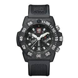 Der Luminox Navy SEAL Chronograph besticht durch sein 45 mm CARBONOX™ Gehäuse, Taucherlünette und bis zu 200 Meter Wasserdichtigkeit und kann zum Tauchen genutzt werden. Beste Ablesbarkeit am Tag dank weisser Beschriftung auf schwarzem Hintergrund. In der Nacht durch das bewährte Luminox-Light-Technology-Beleuchtungssystem. „Always Visible“, energieunabhängig, und das bis zu 25 Jahre lang.